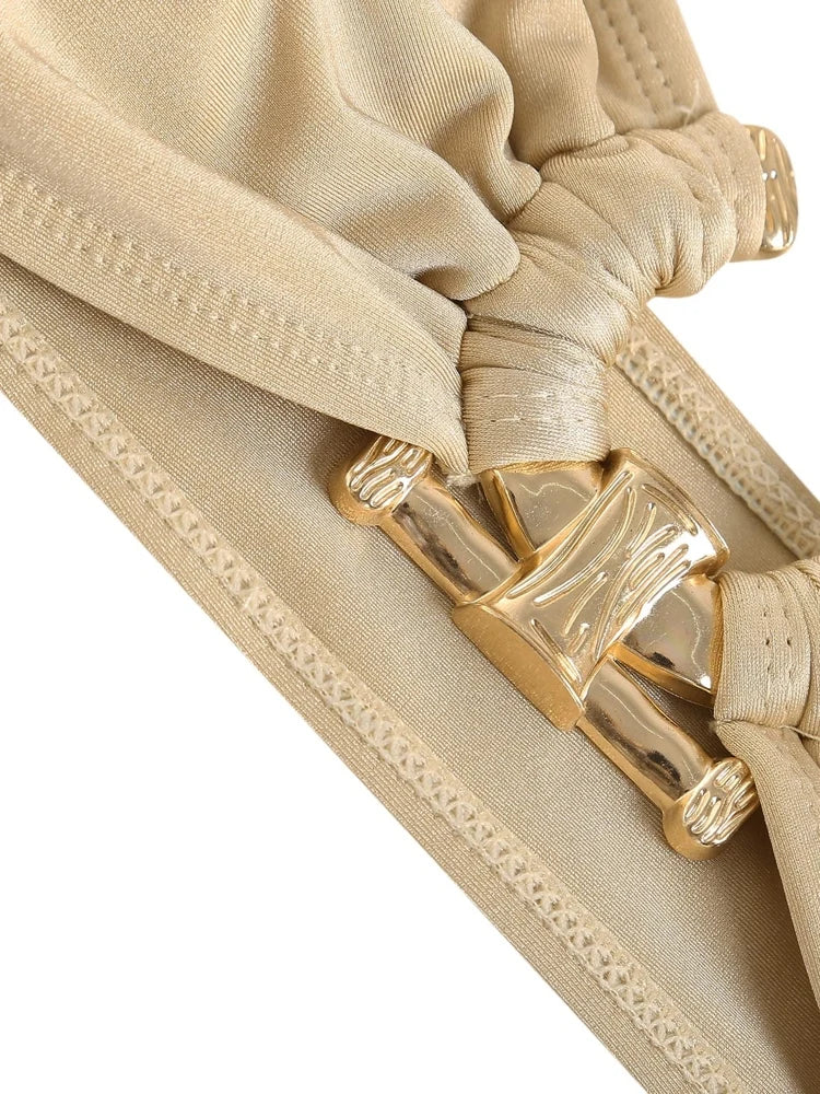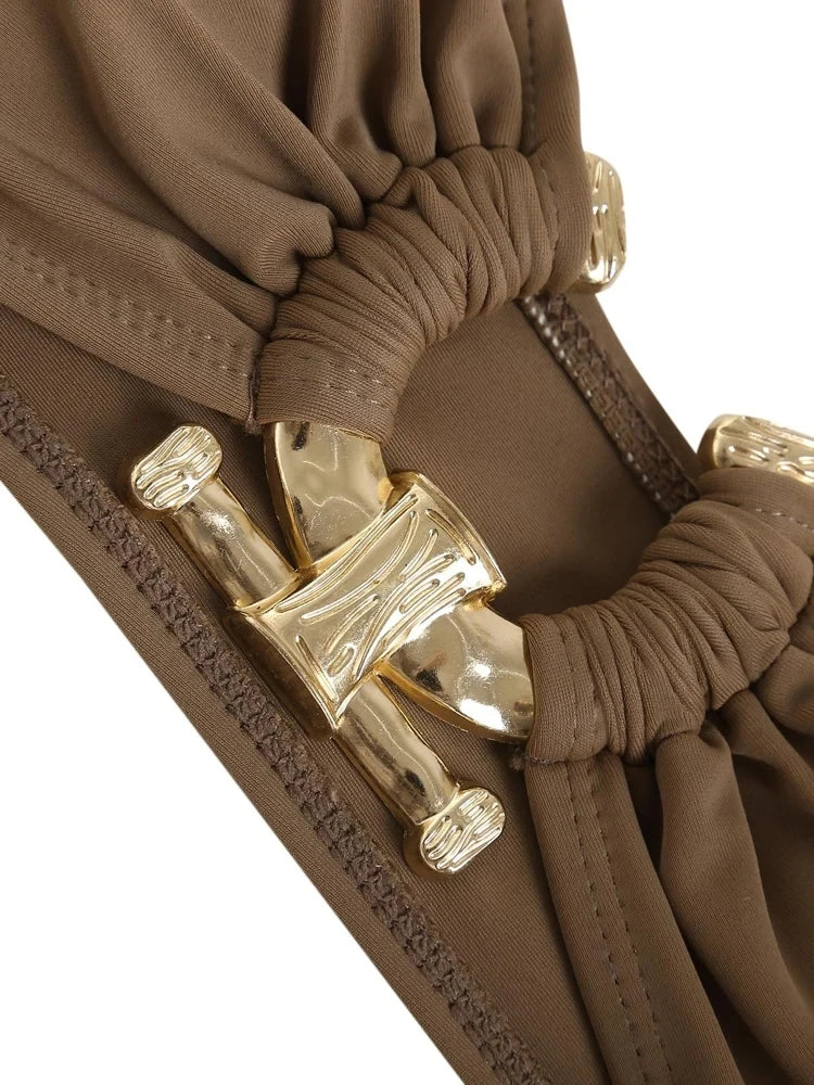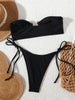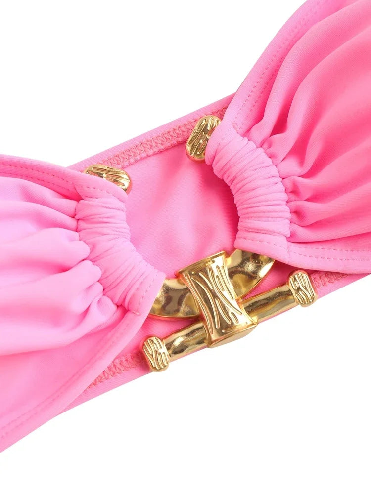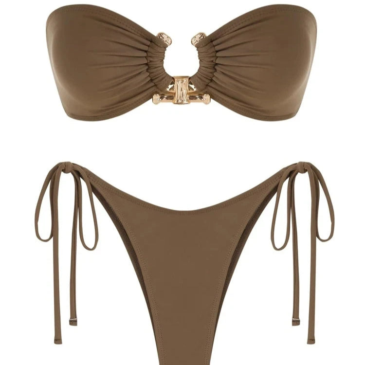 בגד ים סטרפלס 2 חלקים עם טבעת חצי עיגול בחזיה בצבעים מנצחים